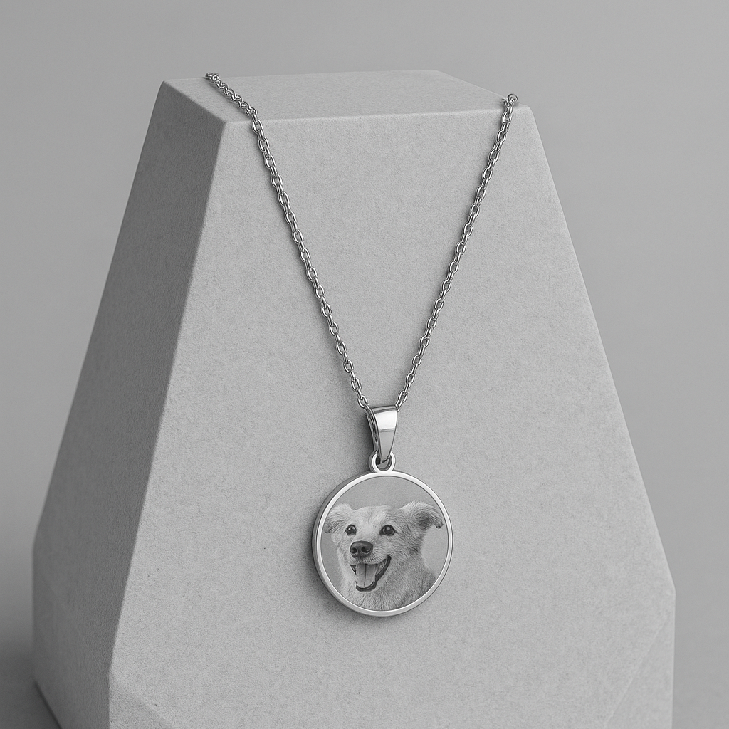 Com a tecnologia de fotogravação, sua foto é reproduzida com precisão no pingente, criando uma joia personalizada, resistente e com acabamento elegante. Ideal para quem quer carregar o companheiro de quatro patas sempre por perto — com estilo, significado e qualidade.